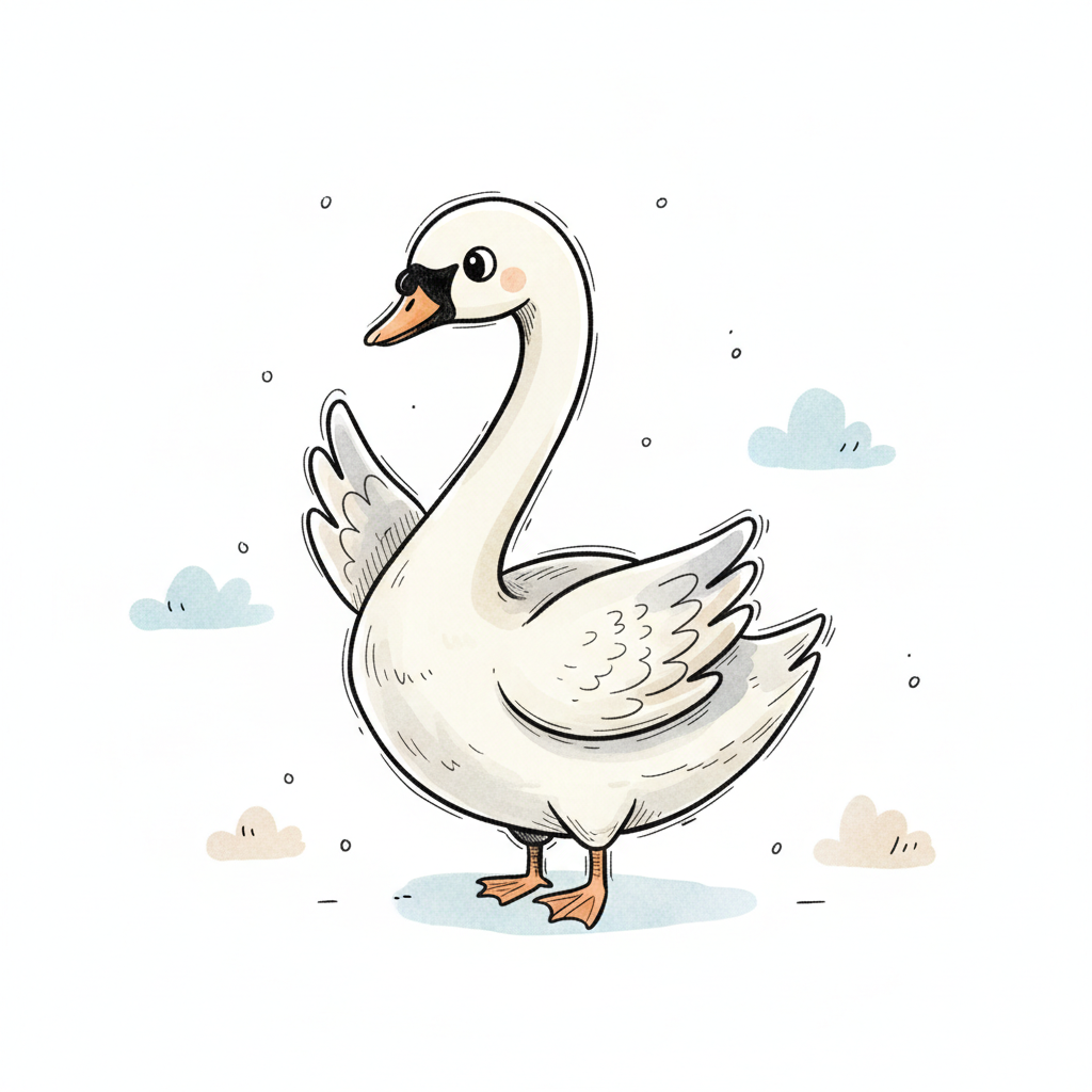 Eine niedliche, gezeichnete Schwäne mit ausgebreiteten Flügeln.