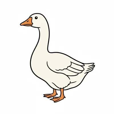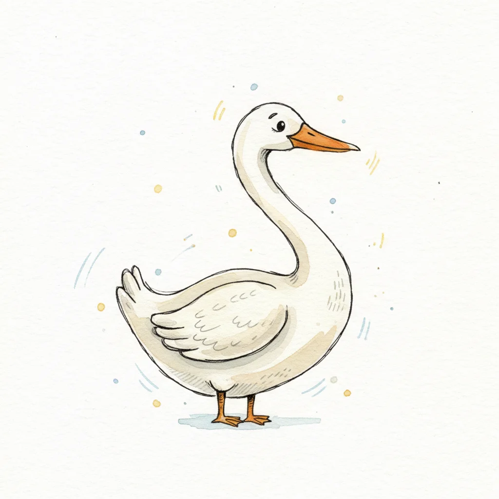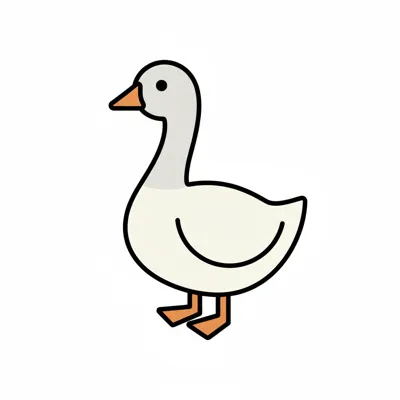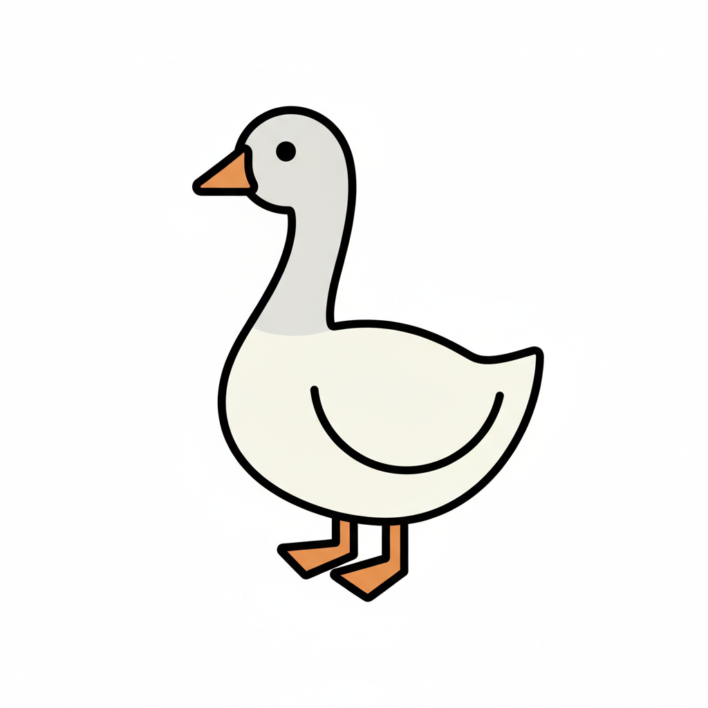 Eine fröhliche, cartoonartige Gans mit orangefarbener Schnauze.