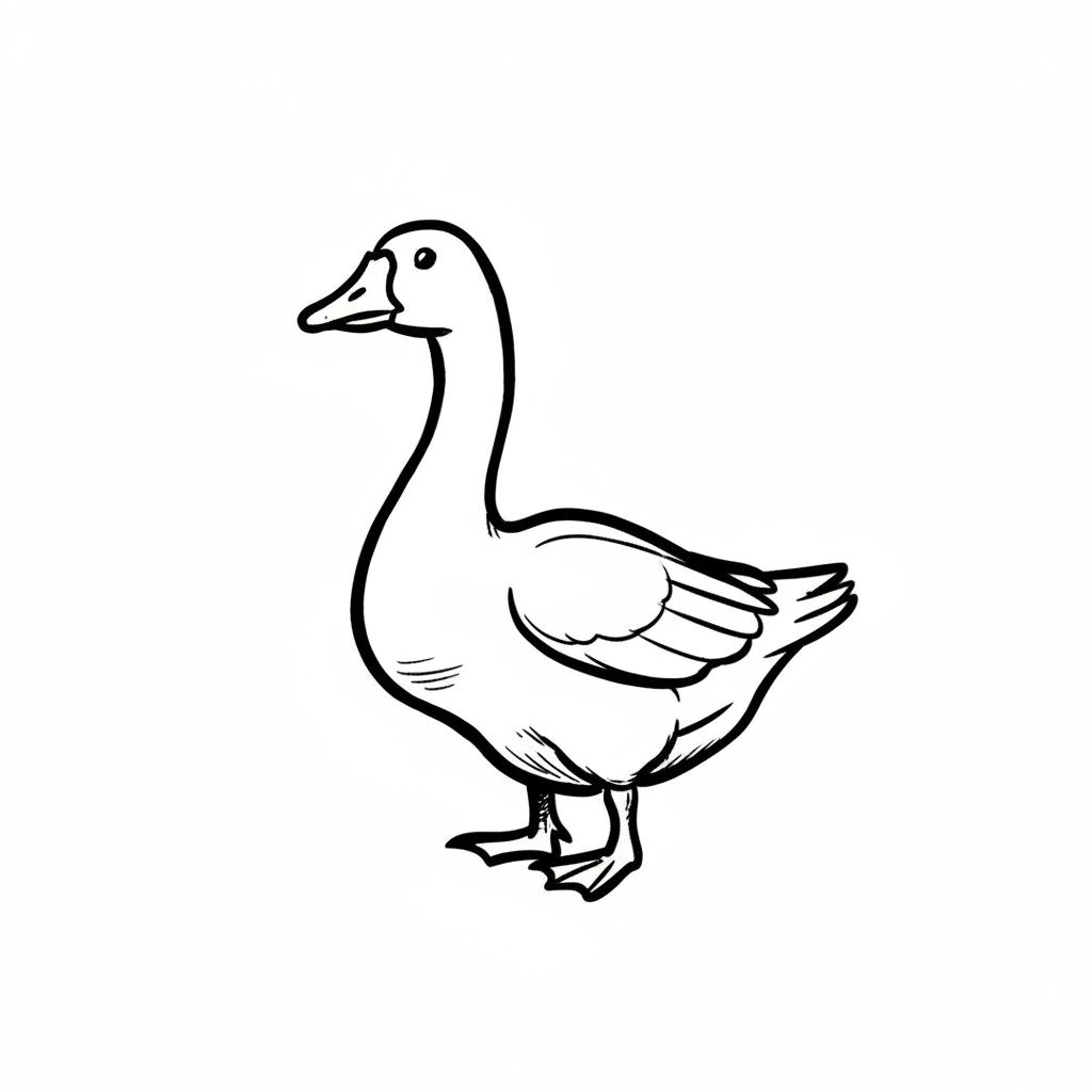 Eine einfache Zeichnung einer Ente in Seitenansicht.