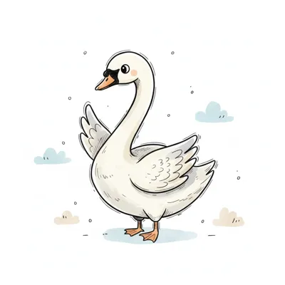 Eine niedliche, cartoonhafte Gans mit hellem Gefieder.