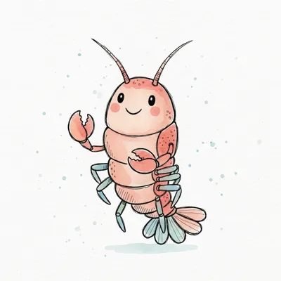 Ein stilisierter, rosa Krebs mit langen Antennen auf weißem Hintergrund.