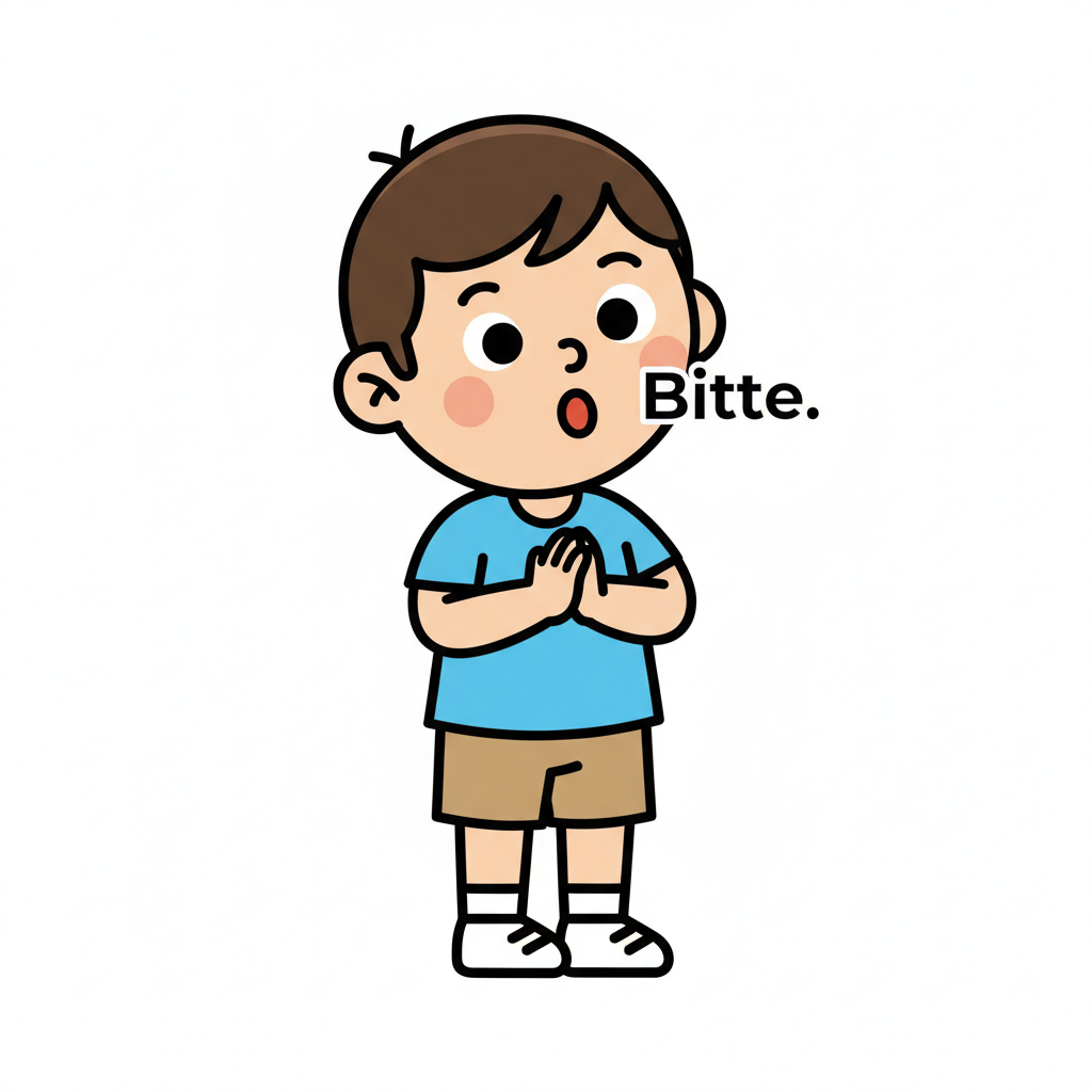 Ein Kind mit gefalteten Händen sagt 'Bitte'.
