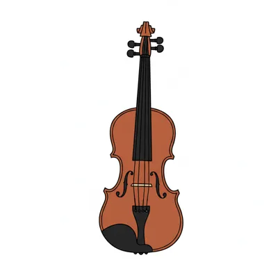 Eine einfache, braune Geige im Cartoon-Stil auf weißem Hintergrund.