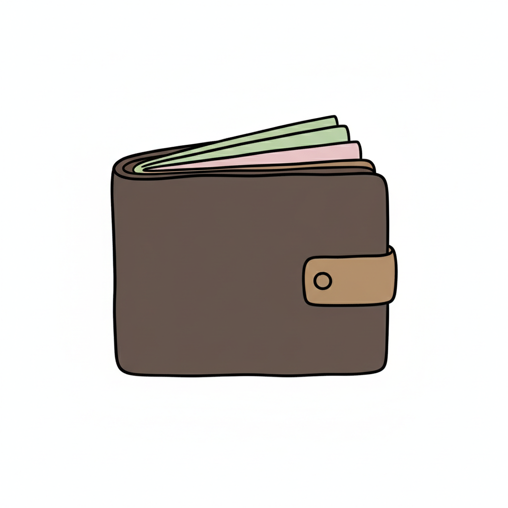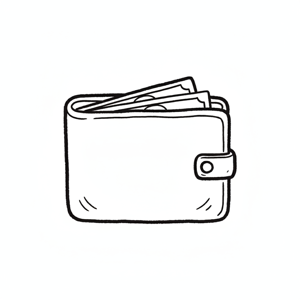 Eine skizzierte Brieftasche mit Geldscheinen.