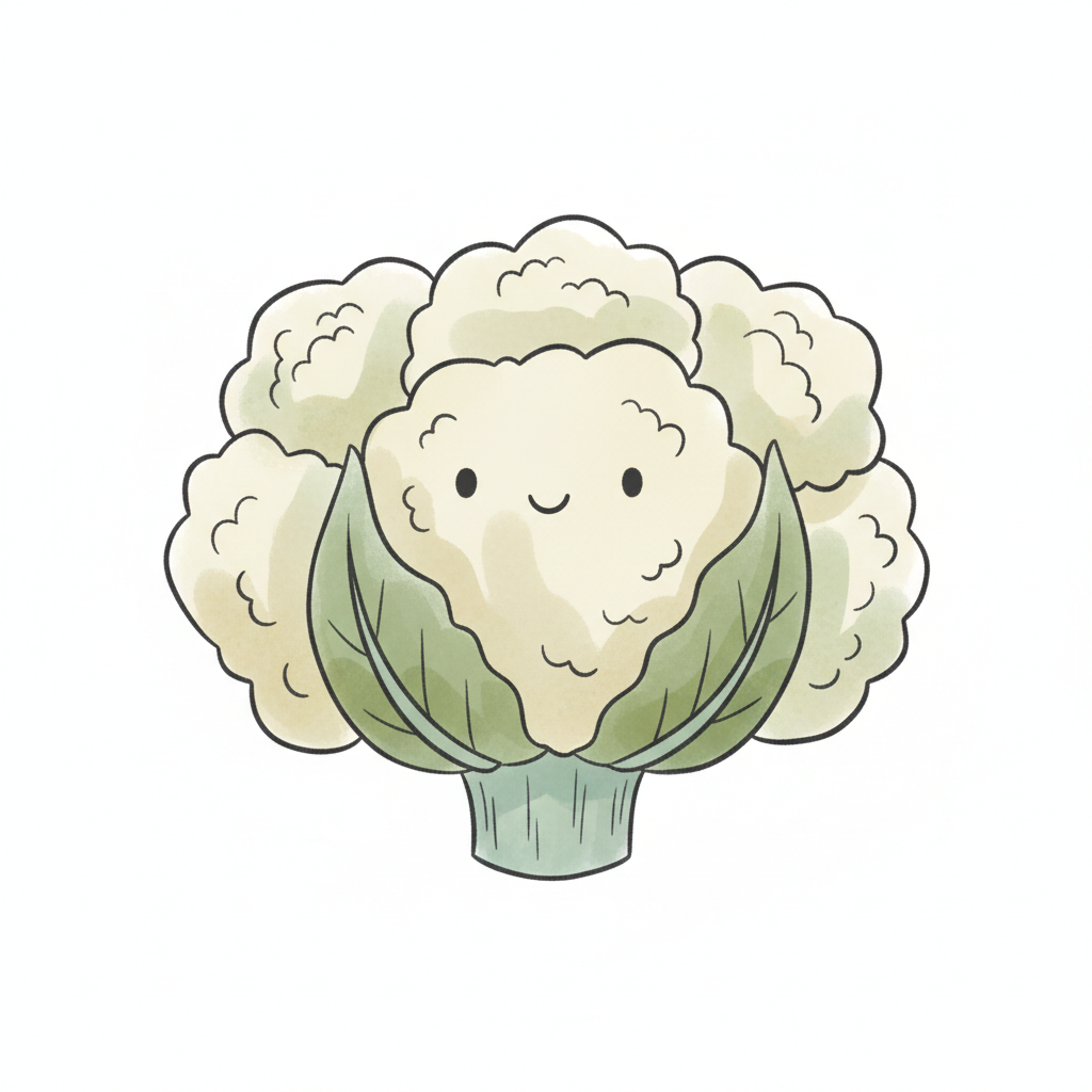 Ein fröhlicher Blumenkohl mit einem lächelnden Gesicht.