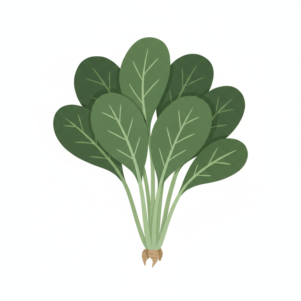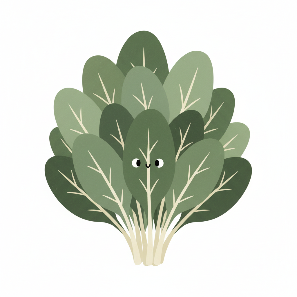 Ein Bündel grüner Blätter, wahrscheinlich Spinat oder ein ähnliches Blattgemüse.