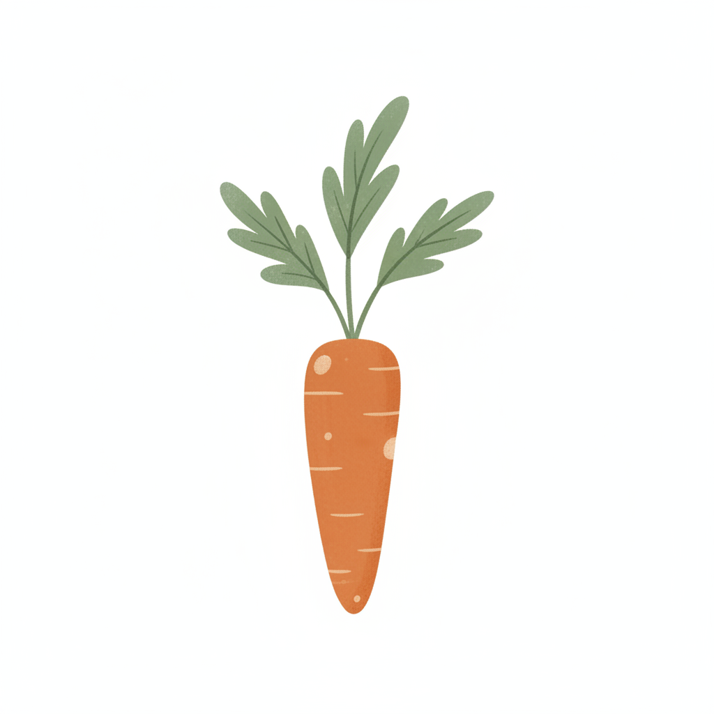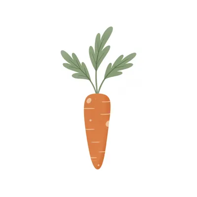 Eine einfache Illustration einer Karotte mit grünen Blättern.