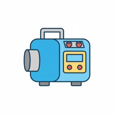 Blaues, tragbares Gerät mit Griff, Auslass und Bedienfeld, im Flat-Design-Stil.
