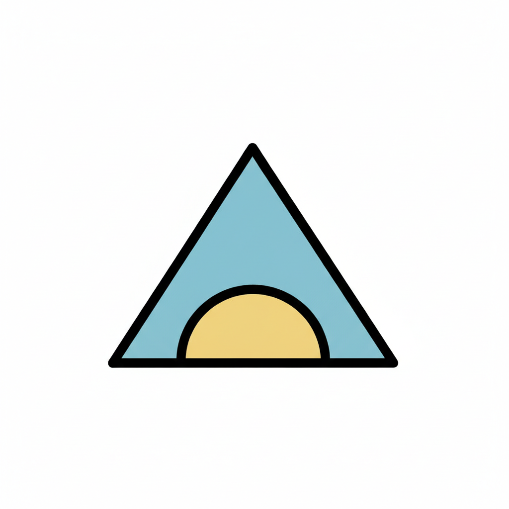 Ein minimalistisches Design eines blauen Dreiecks mit einem Halbkreis.