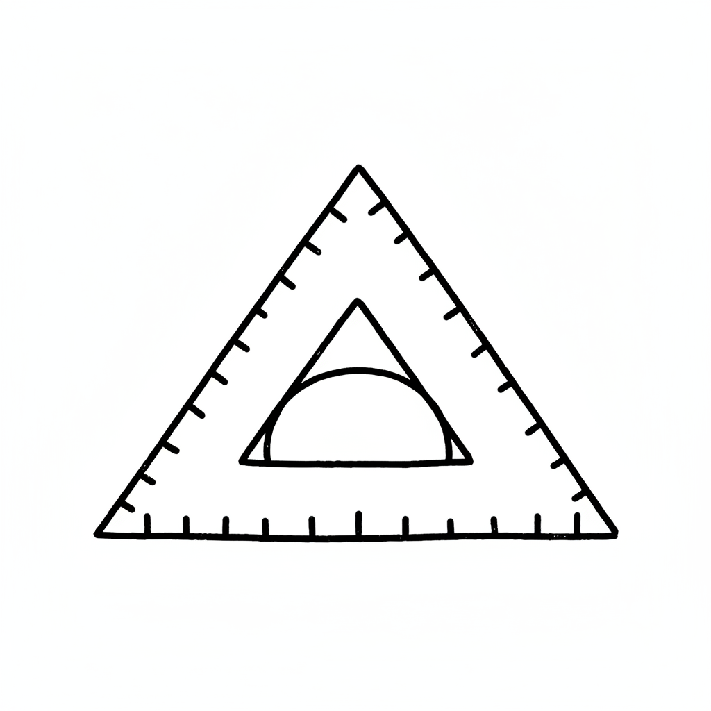 Ein geometrisches Zeicheninstrument in Form eines Dreiecks mit einem Maßstab.
