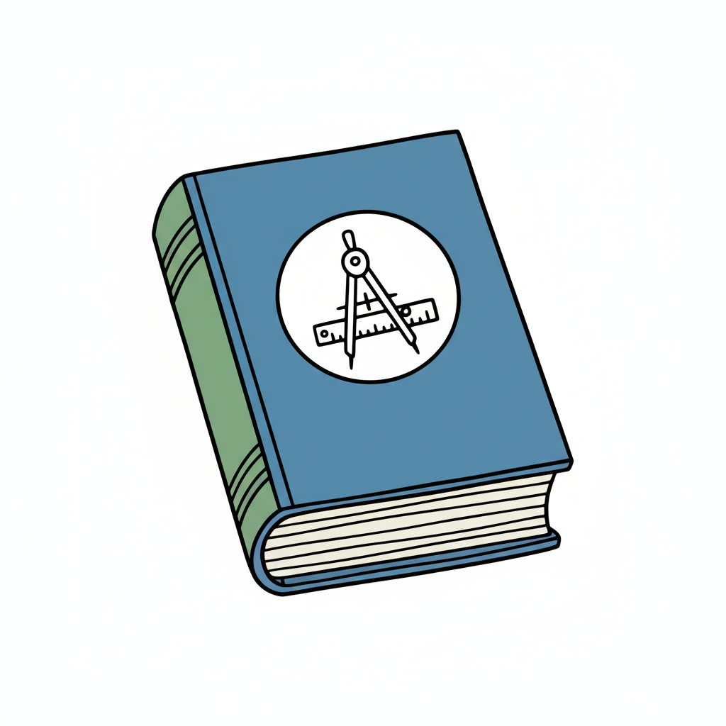Ein geometrisches Buch mit einem Zirkel und Lineal auf dem Cover.