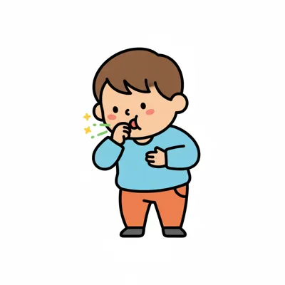 Ein Cartoon-Junge mit schlechtem Atem oder schlechtem Geschmack im Mund, wirkt unwohl.