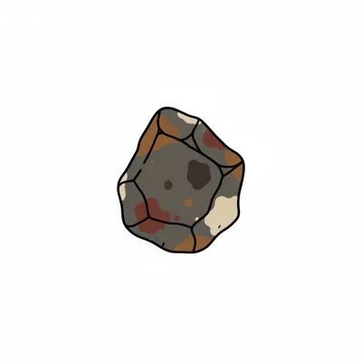 Illustrierter, unregelmäßig geformter Stein in erdigen Farben auf weißem Hintergrund.