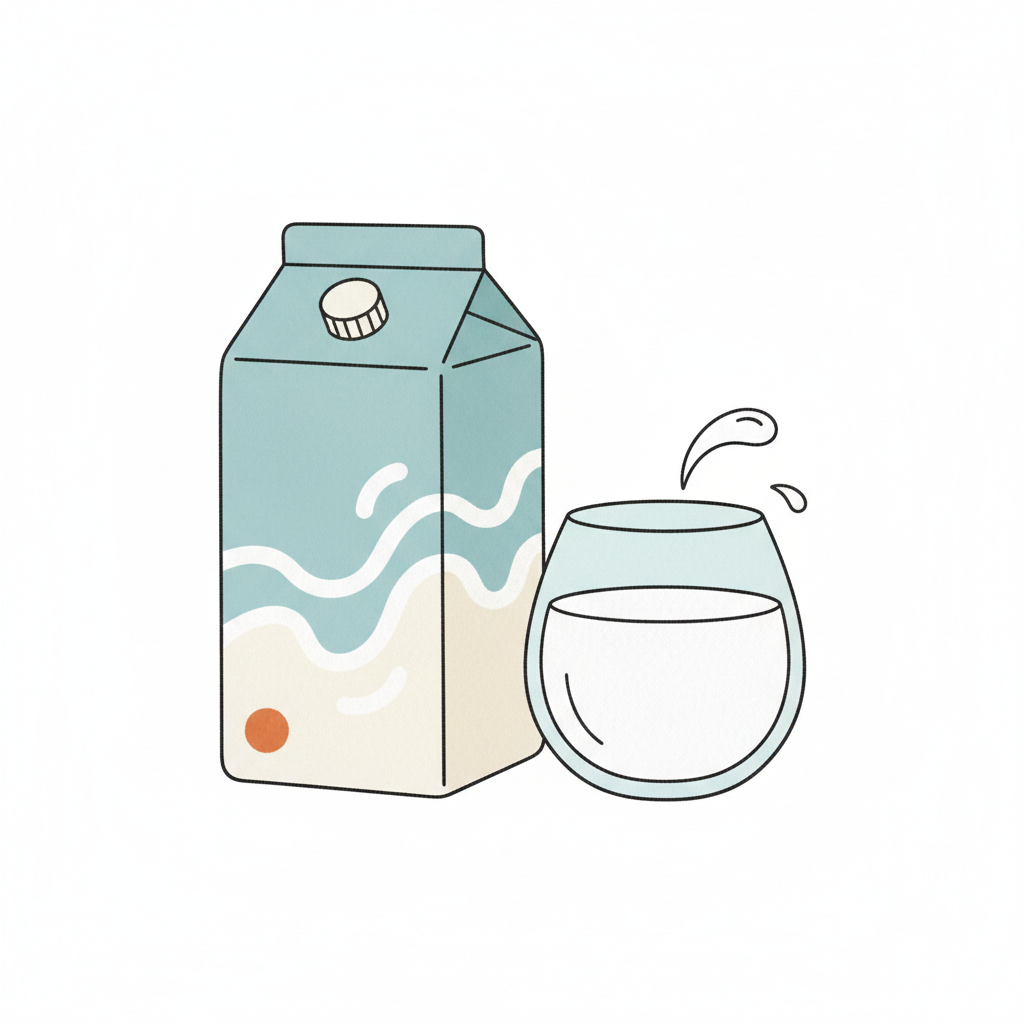 Eine Milchpackung neben einem Glas Wasser.