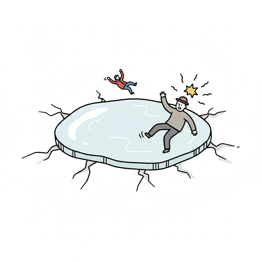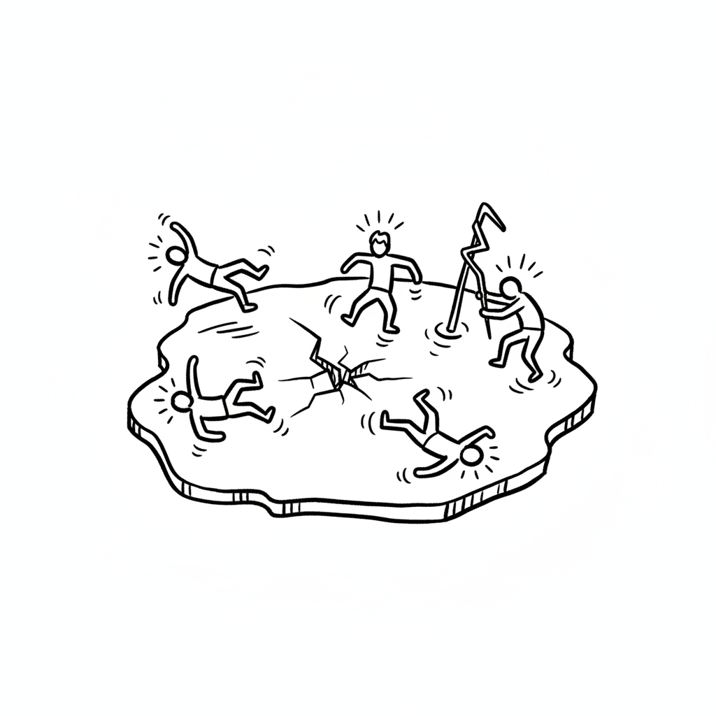 Menschen auf einer brüchigen Fläche, die sich gefährlich verhält.