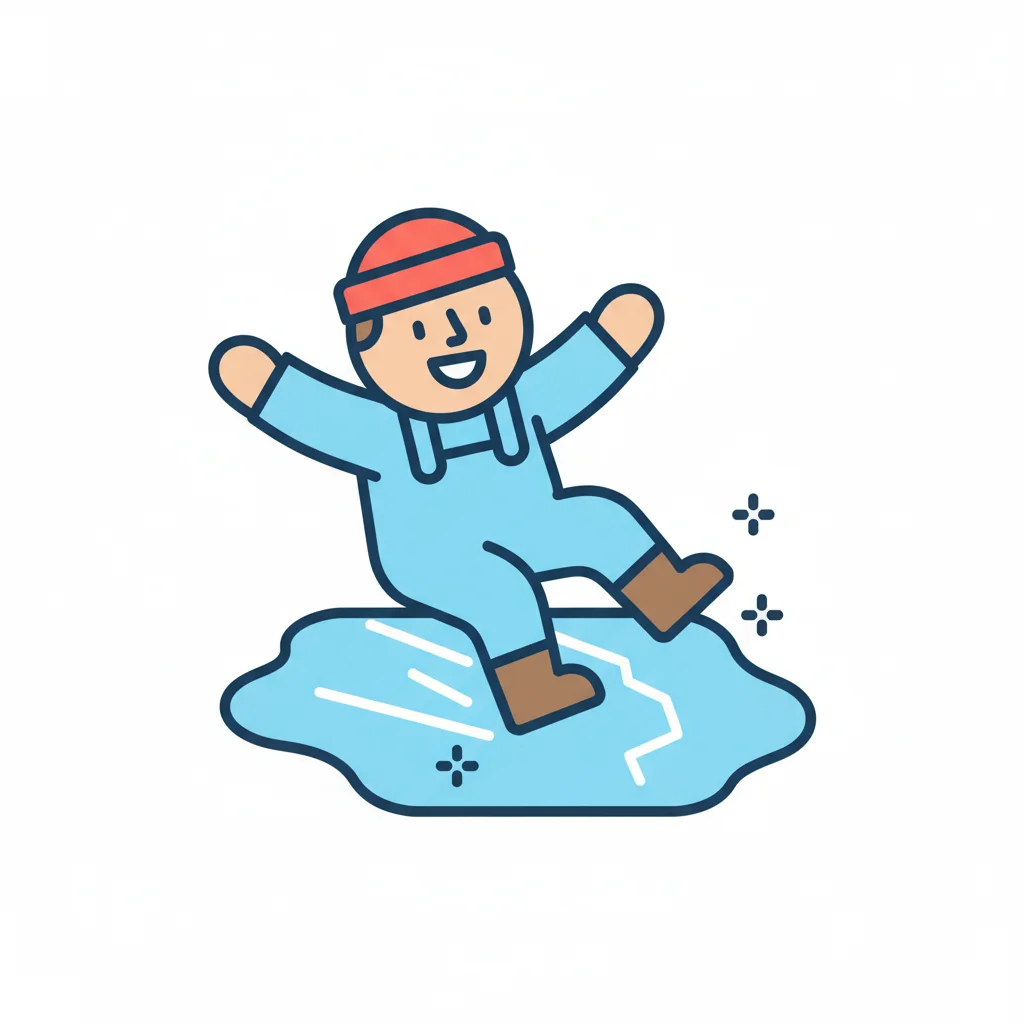 Person rutscht auf einer dünnen Eisfläche, andere fällt ins Wasser.
