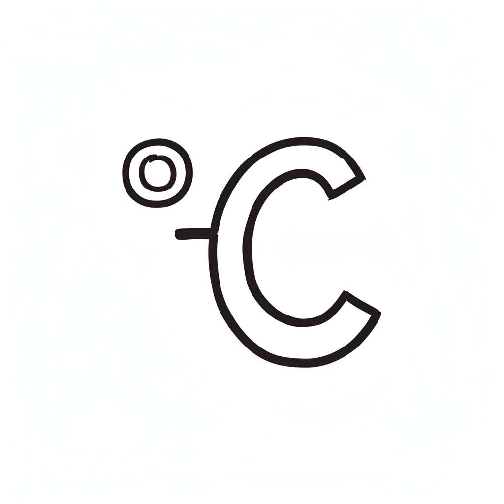 Ein Schwarz-Weiß-Symbol für Grad Celsius (°C) auf weißem Hintergrund, das eine Temperaturangabe darstellt.