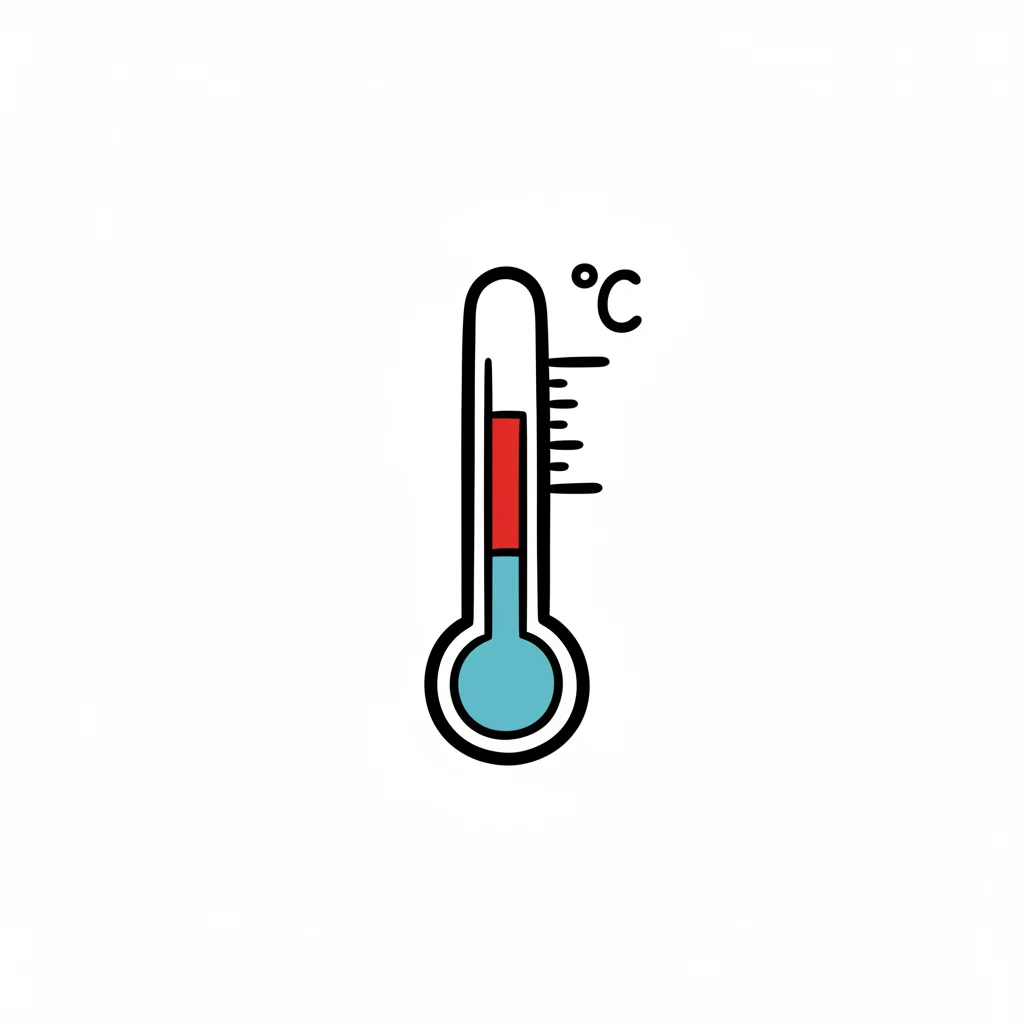 Illustration eines Thermometers mit roter Anzeige und dem °C-Symbol auf weißem Hintergrund.