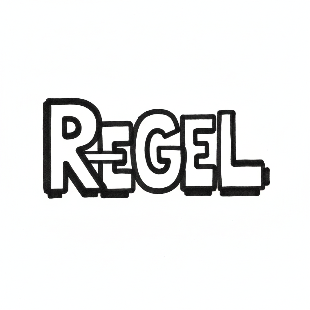 Das Wort "REGEL" in einem markanten, umrandeten Graffiti-Stil auf weißem Hintergrund.