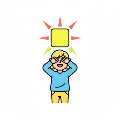 Cartoon-Figur schützt ihre Augen vor einem hellen, blendenden Licht oder der Sonne.