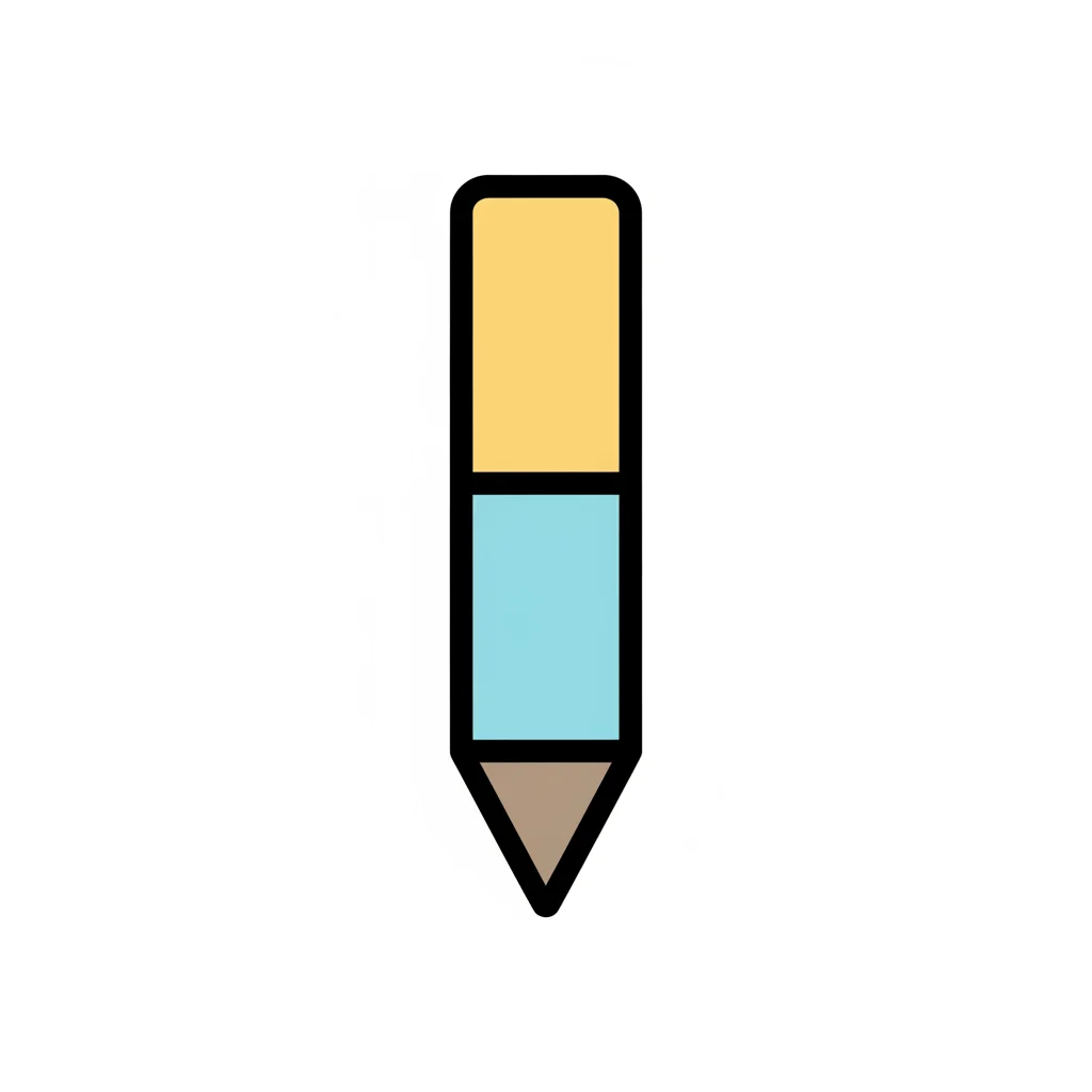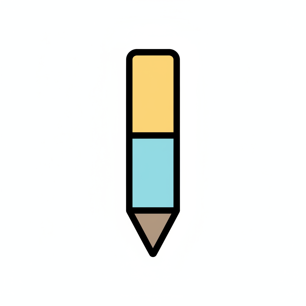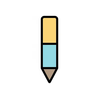 Flaches Icon eines Bleistifts in Gelb, Blau und Braun mit schwarzer Umrandung.