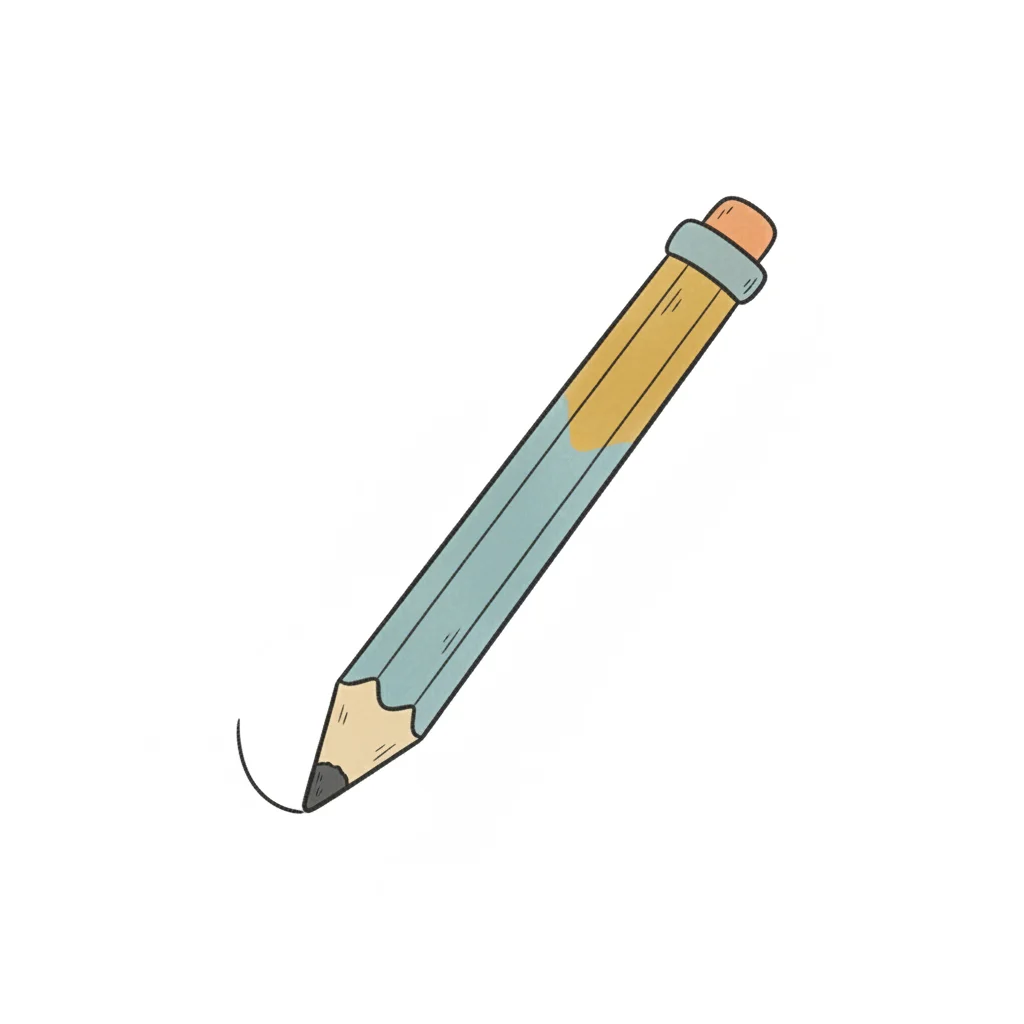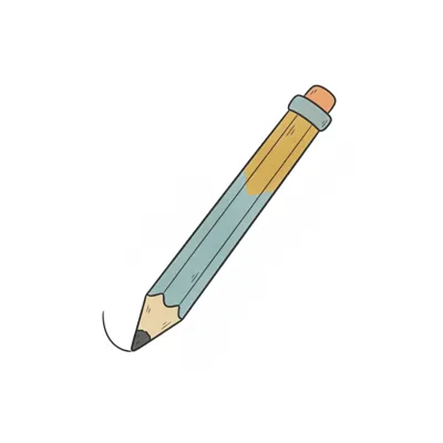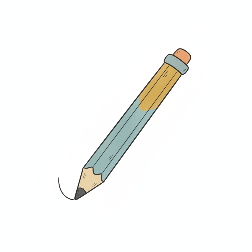 Ein illustrierter Bleistift in Blau und Gelb mit Radiergummi, der eine Linie zeichnet.