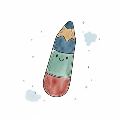Niedlicher, lächelnder Buntstift in Aquarell-Optik auf weißem Hintergrund.