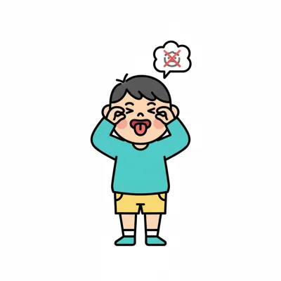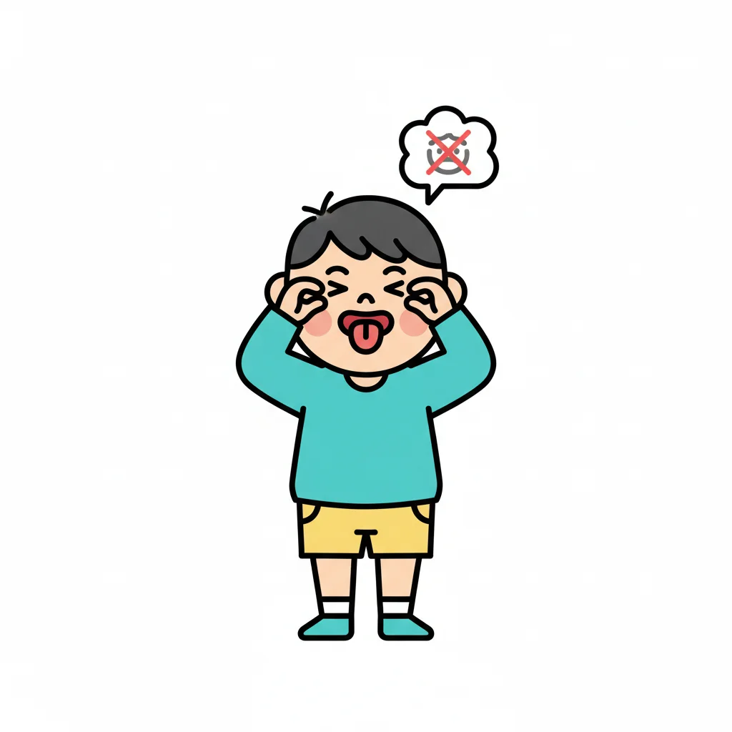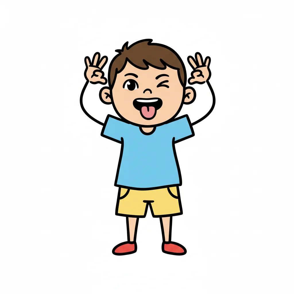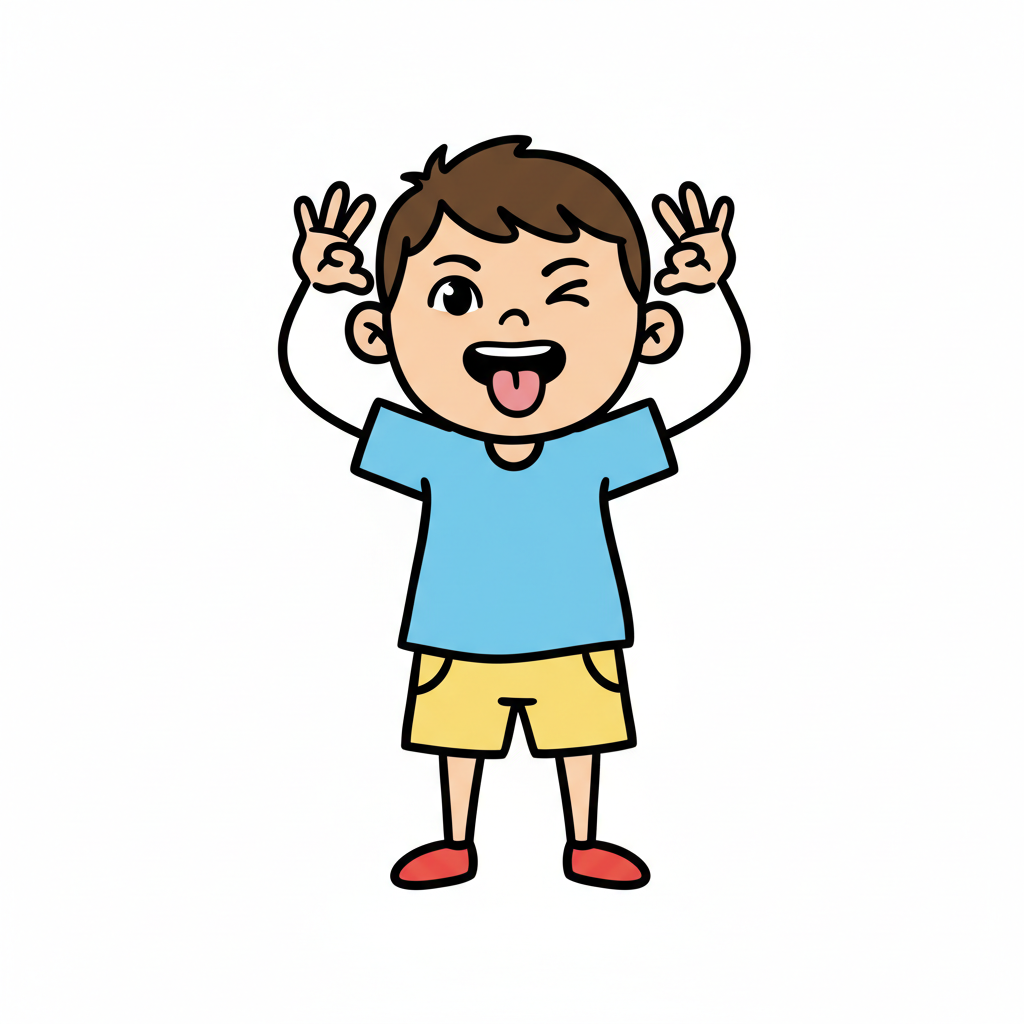 Ein Cartoon-Junge macht eine Grimasse, streckt die Zunge heraus und zieht die Augenlider herunter.