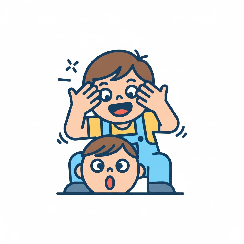 Zwei Kinder spielen Guck-Guck. Eines lacht, das andere ist überrascht.