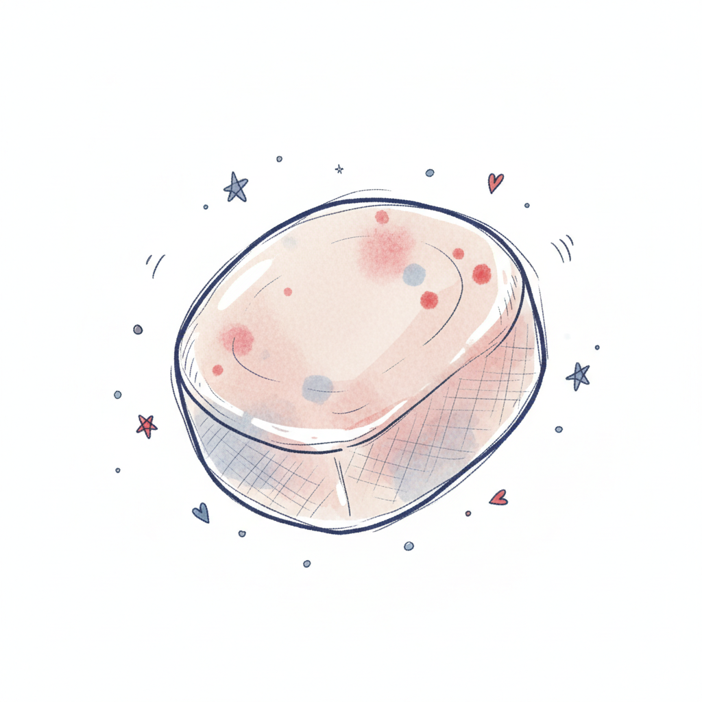 Niedliche, skizzierte Seife mit bunten Punkten und Sternen in Aquarell-Optik.