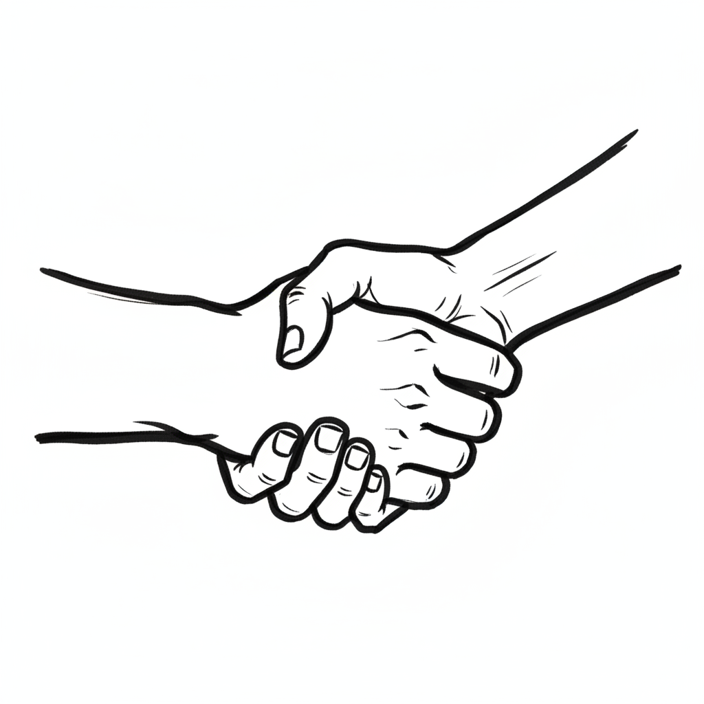 Schwarz-weiße Strichzeichnung von zwei Händen, die sich schütteln.