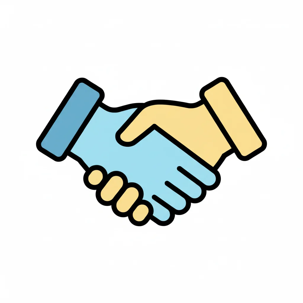 Icon einer Händedruck-Geste in Blau und Gelb, symbolisiert Einigung oder Begrüßung.