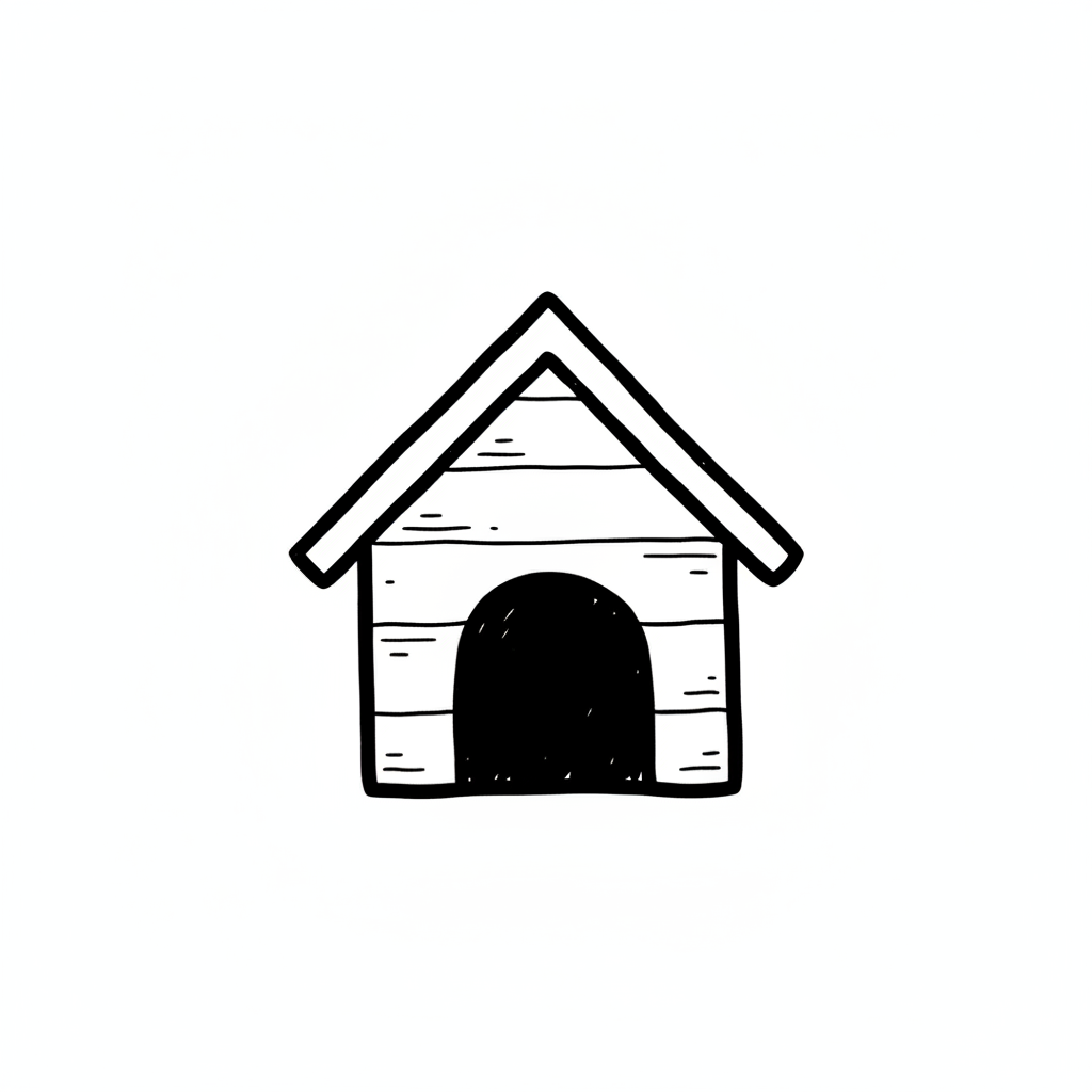 Ein einfaches, handgezeichnetes Hundehäuschen ohne Farbe.