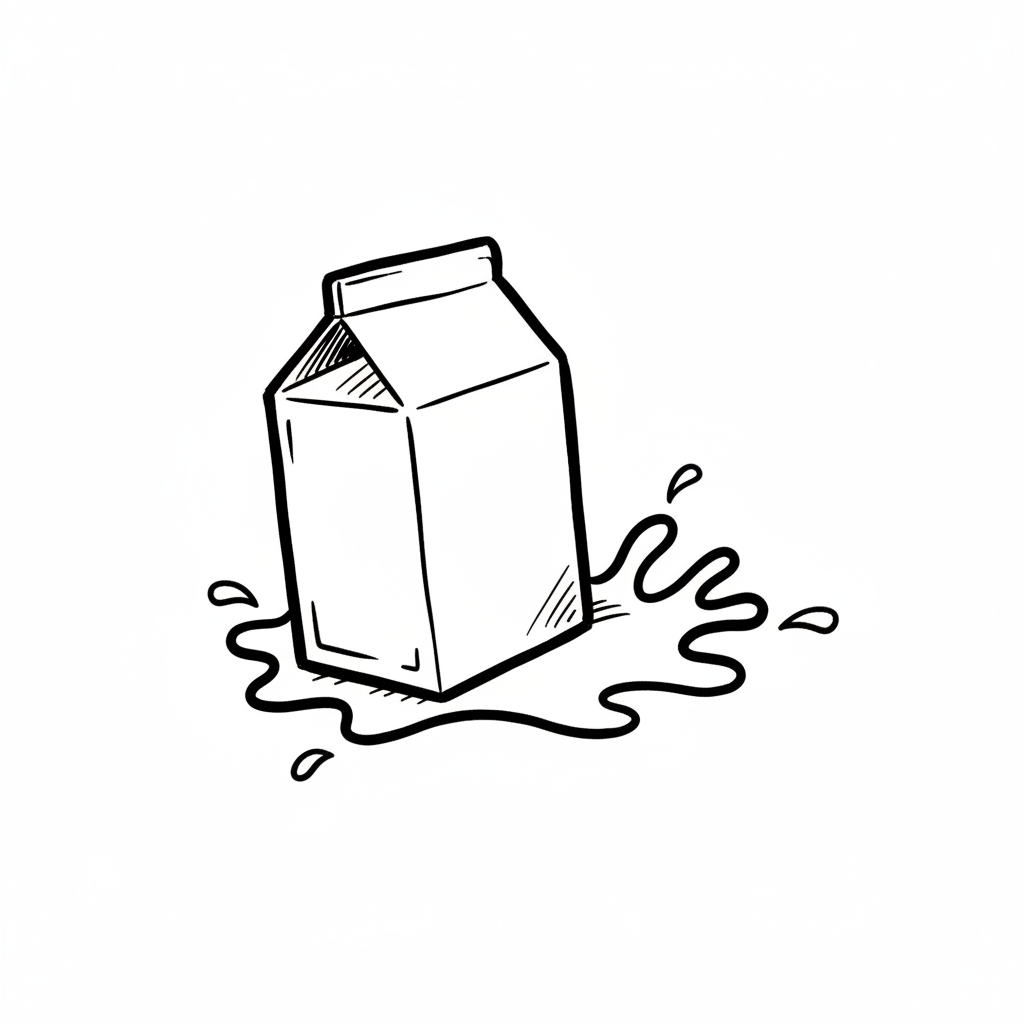 Ein umgekipptes Milchpaket mit verschütteter Milch.