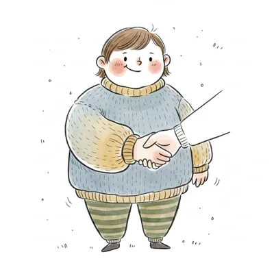 Ein Kind in einem gemütlichen Pullover schüttelt jemandem die Hand.