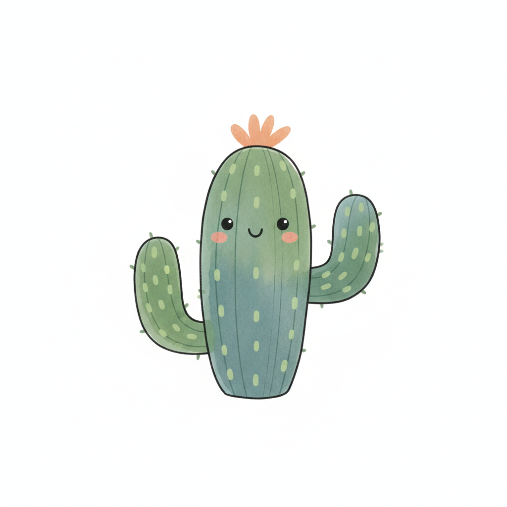Ein niedlicher Kaktus mit freundlichem Gesicht und buntem Haar.