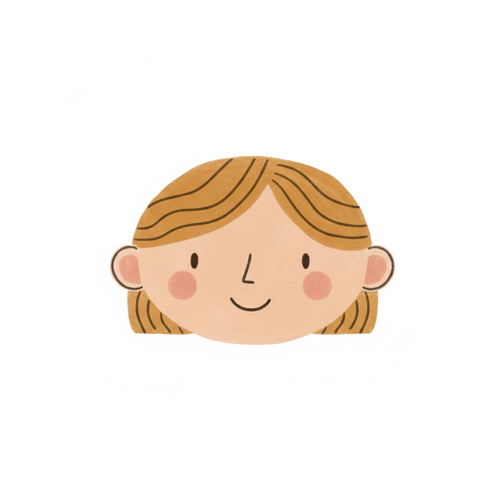 Handgezeichnete Kinderbuchillustration im modernen skandinavisch-nordischen Stil. Minimalistische, freundliche Figur mit einfachen Formen und leicht unregelmäßigen, handgezeichneten Linien. Ruhige, gedeckte Farbpalette, viel freie Fläche, reduzierte Details, sanfte Papier- oder Aquarellstruktur. Warme, ruhige, leicht humorvolle Stimmung, flächige Komposition ohne starke Perspektive, moderner nordischer Illustrationsstil, charmant und zeitlos.