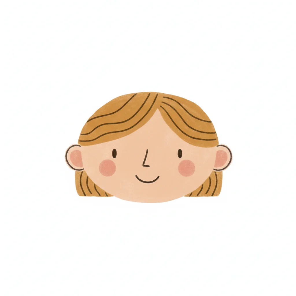Ein einfaches, fröhliches Gesicht mit braunen Haaren und roten Wangen.