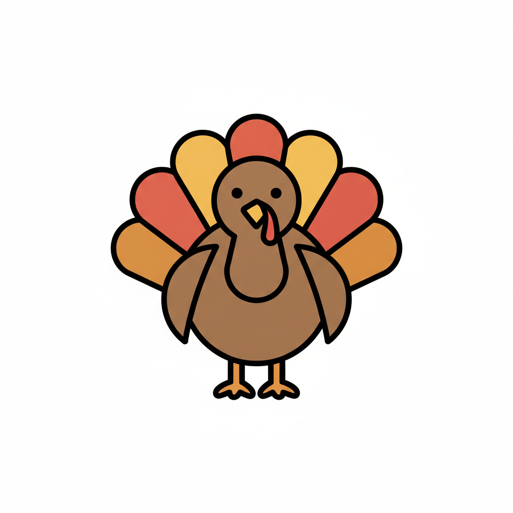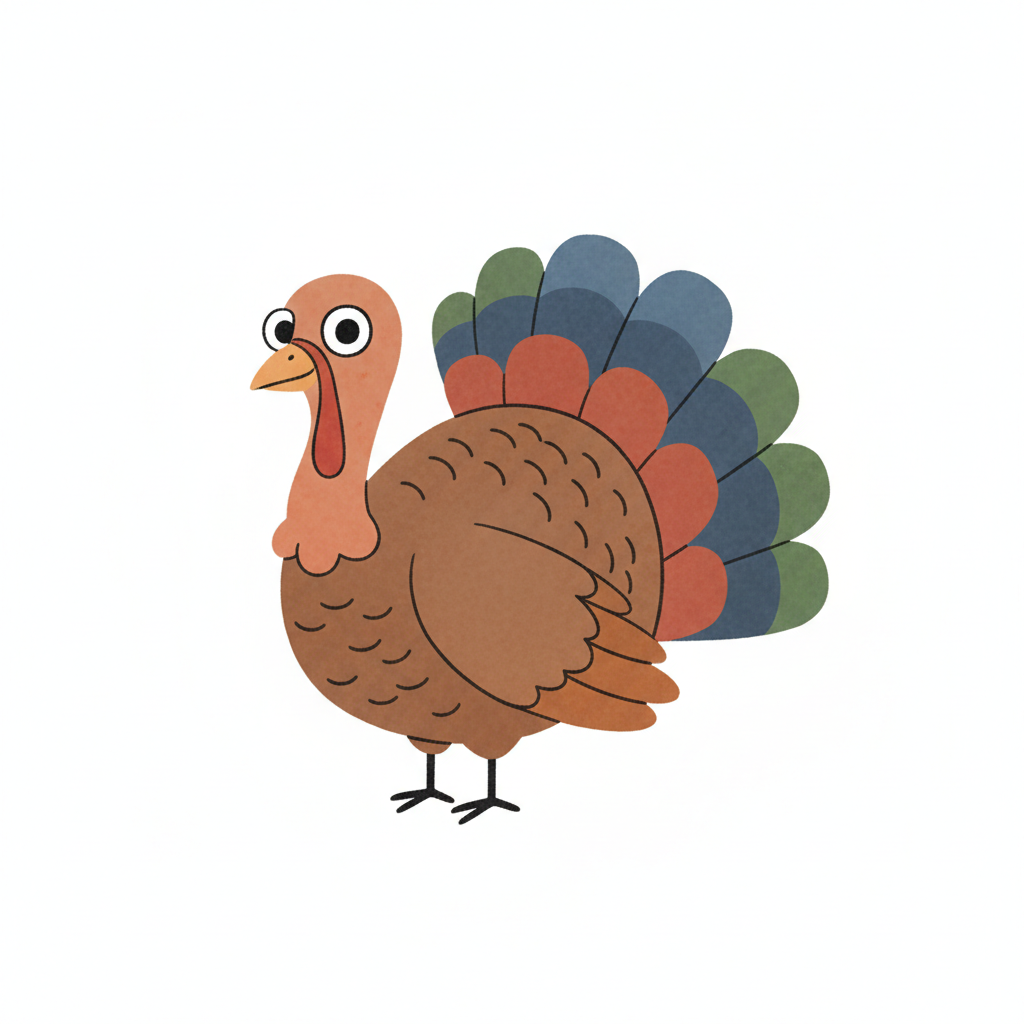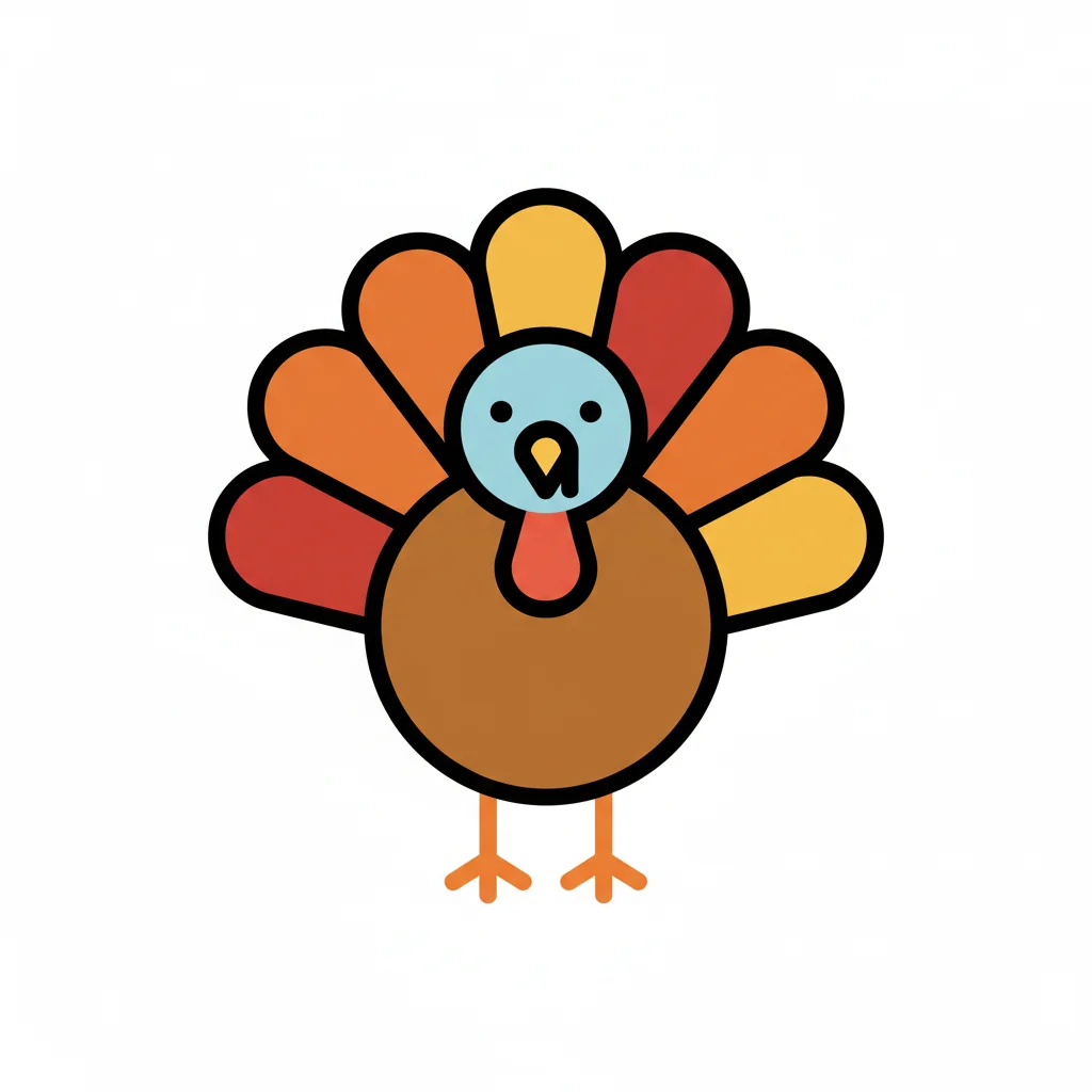 Ein niedlicher, stilisierter Truthahn mit buntem Gefieder.
