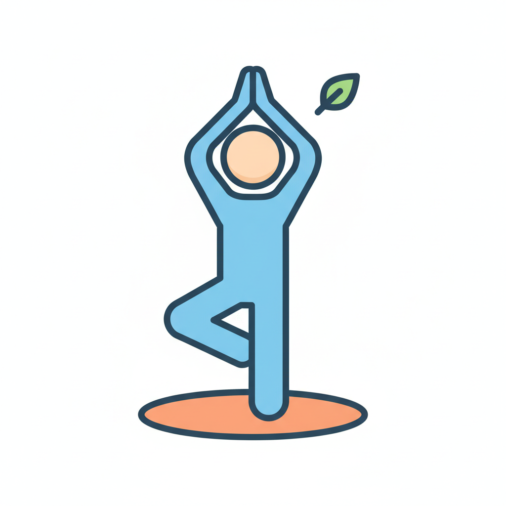 Stilisierte Person in Yoga-Baumhaltung mit Blatt, symbolisiert Wellness und Natur.