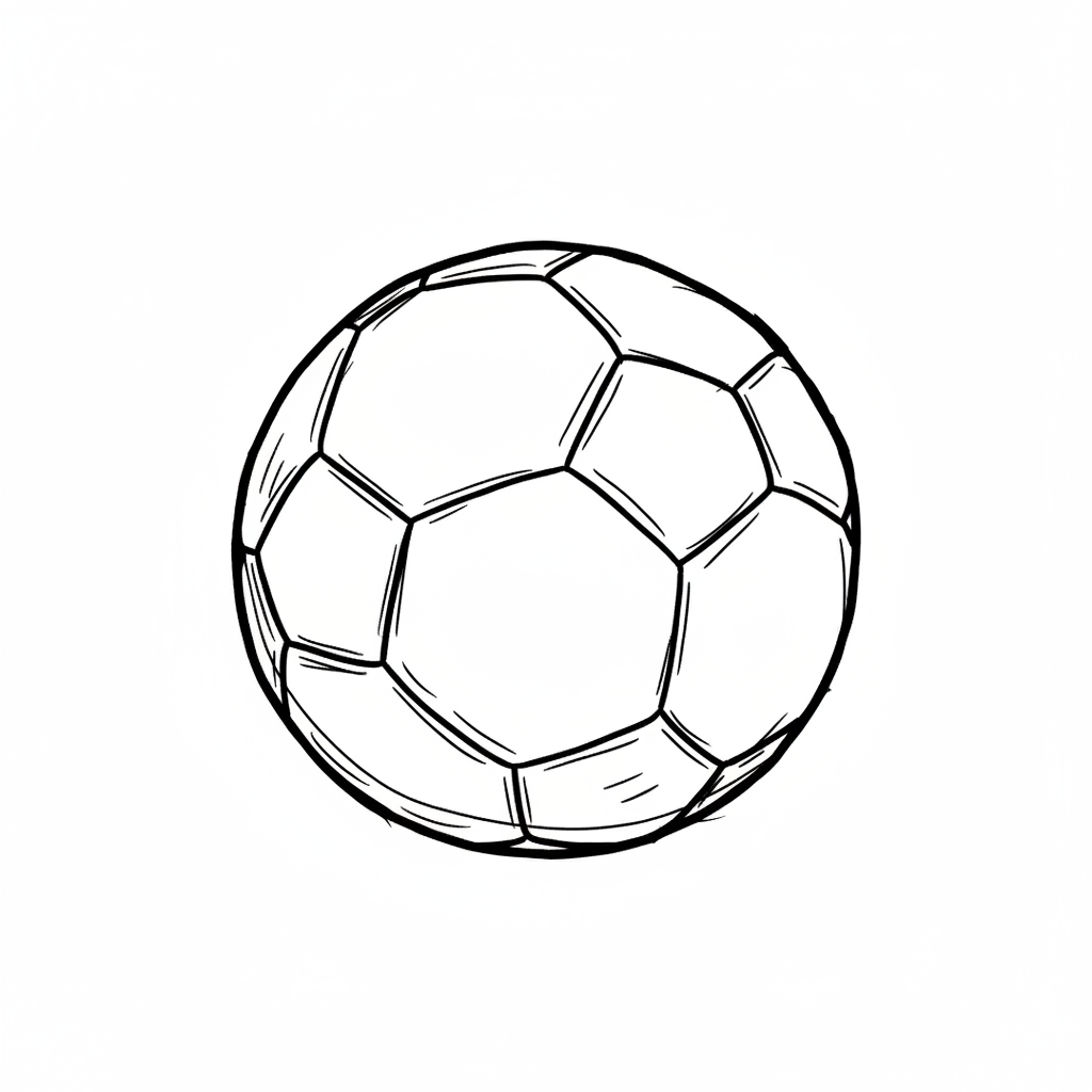 Skizze eines klassischen Fußballs mit schwarzen und weißen Panelen.