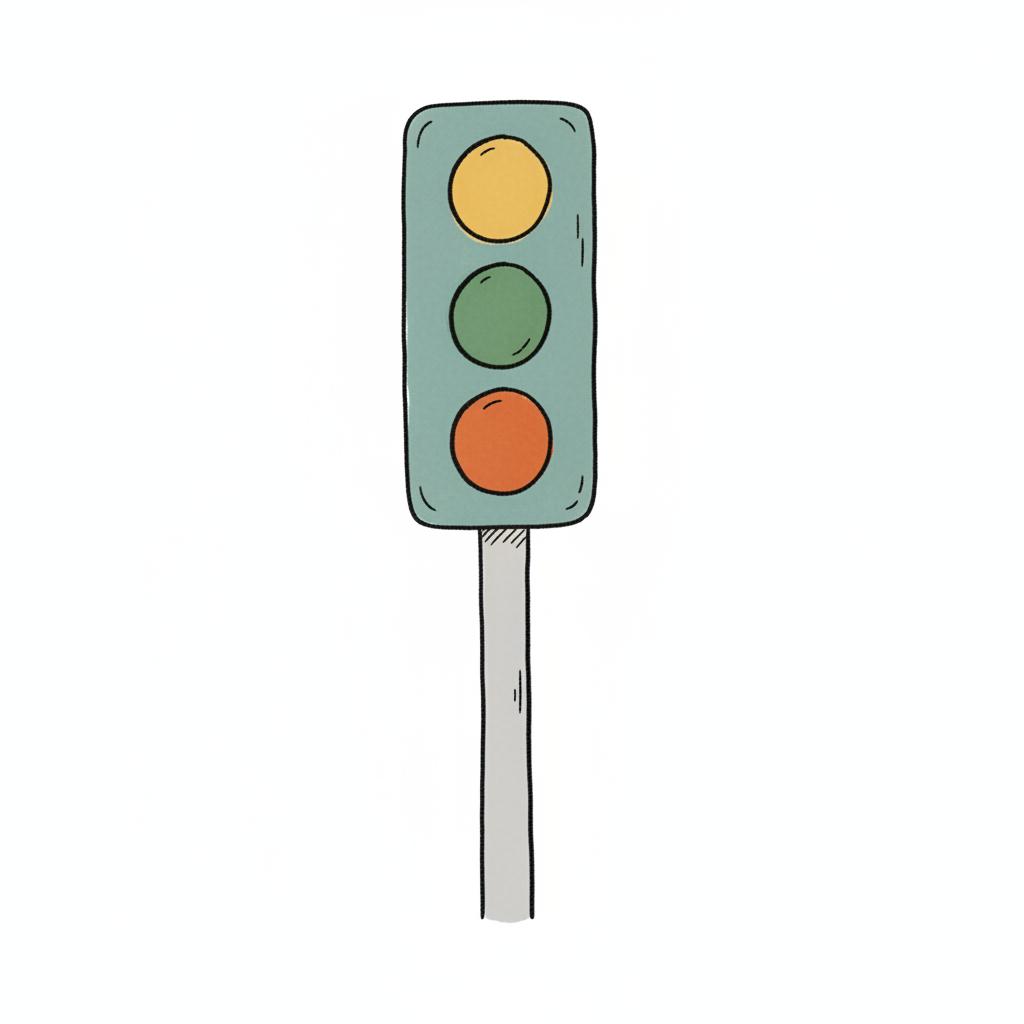 Eine einfache, handgezeichnete Ampel mit drei Lichtern.