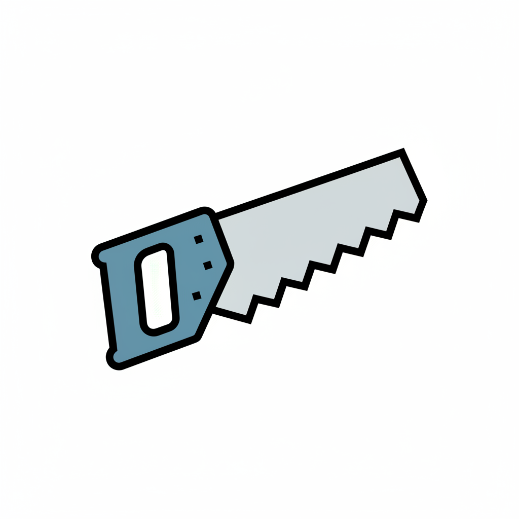 Stilisierte Handsäge mit blauem Griff und gezackter Klinge auf weißem Hintergrund.