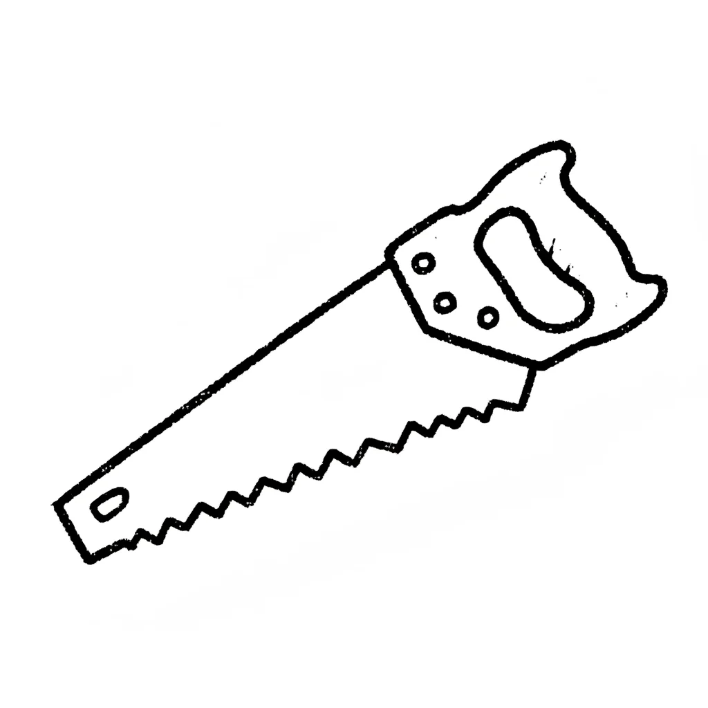 Illustration einer Handsäge mit Holzgriff und gezacktem Metallblatt auf weißem Hintergrund.