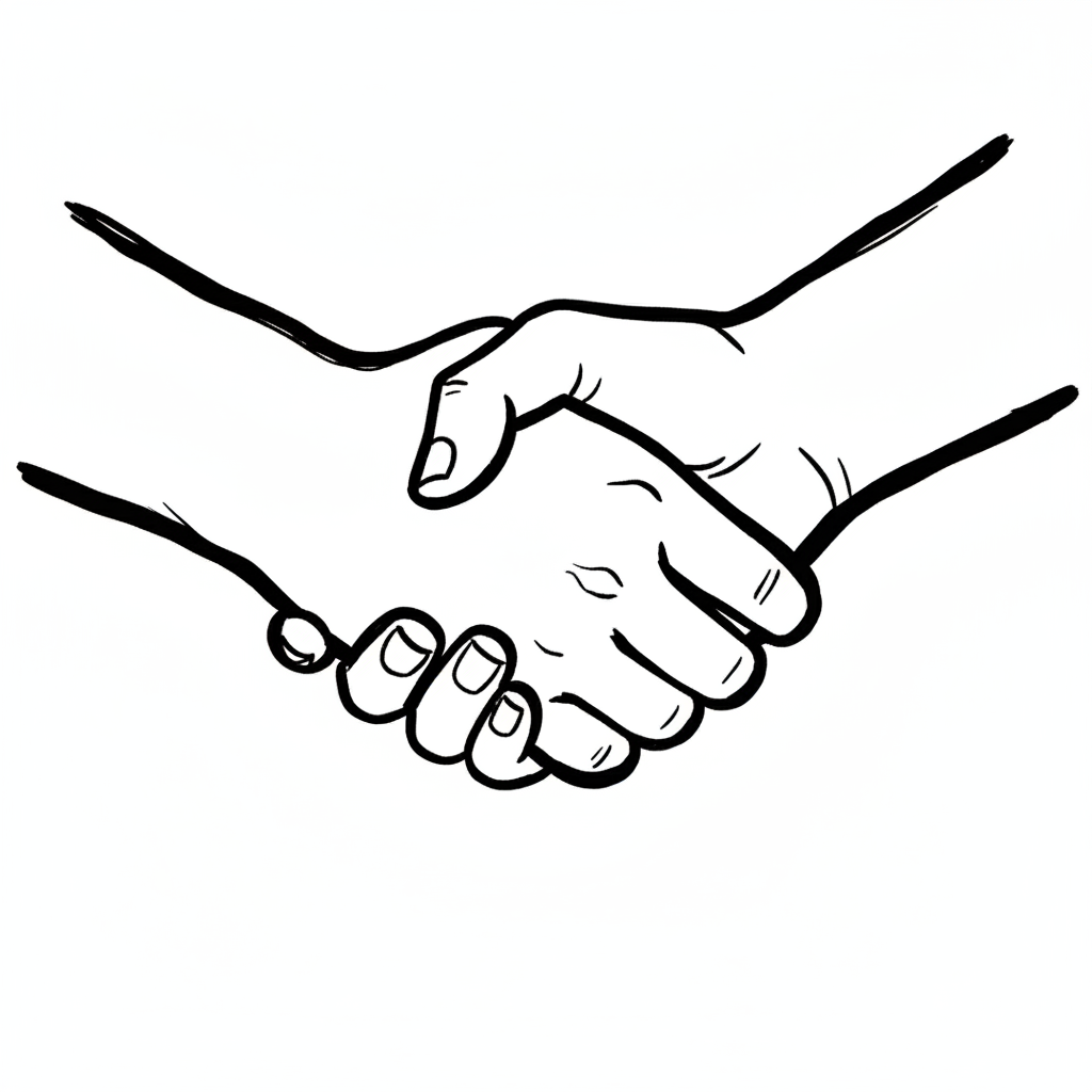 Schwarz-weiße Strichzeichnung von zwei Händen, die sich schütteln.