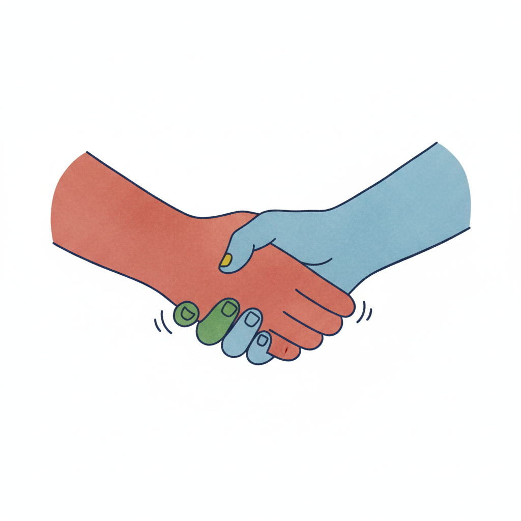 Illustration einer hellblauen und einer hautfarbenen Hand, die sich schütteln.