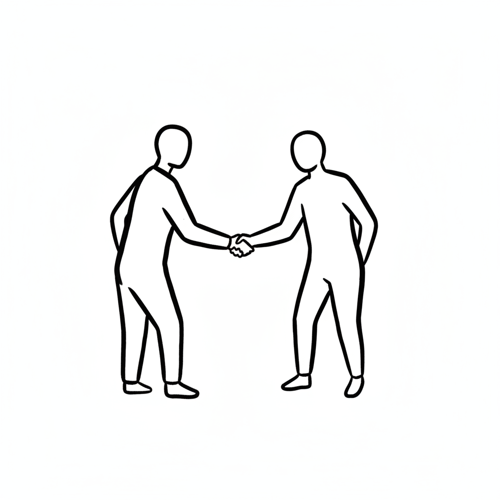 Schwarz-weiße Strichzeichnung von zwei Personen, die sich die Hände schütteln.