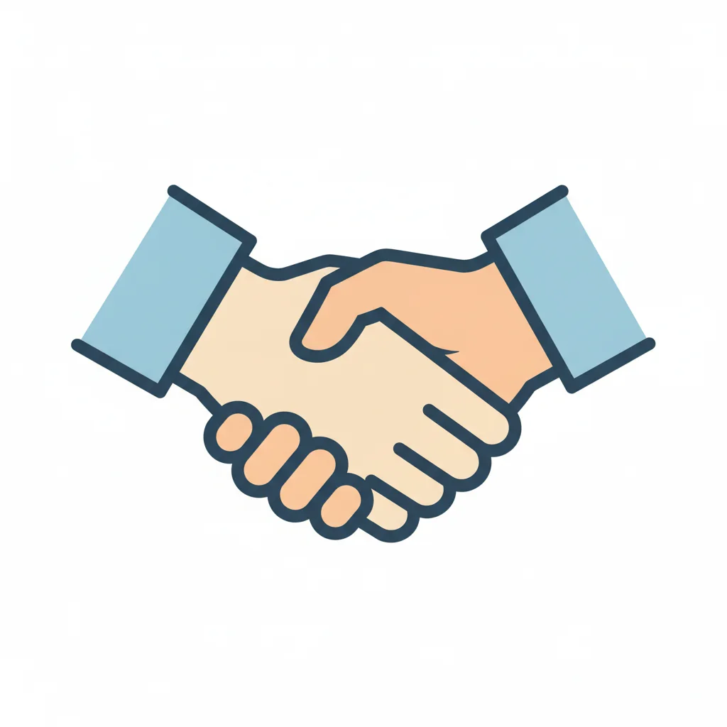 Cartoon-Illustration von zwei Händen, die sich schütteln, symbolisiert Einigkeit oder Partnerschaft.
