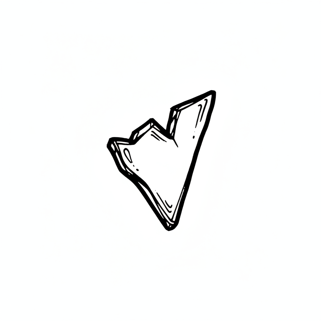 Handgezeichnete, scharfe Scherbe in Schwarz-Weiß mit dicken Konturen und Schattierungen.