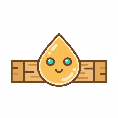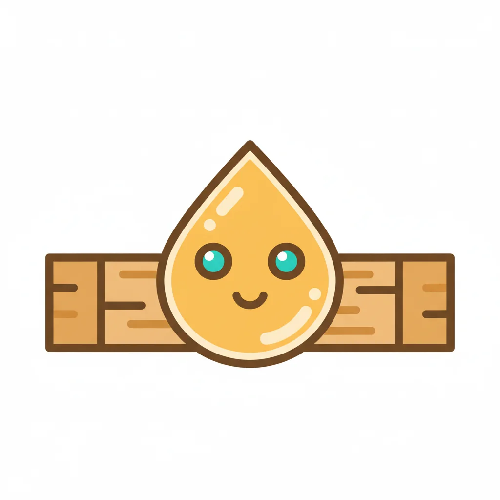 Zwei Holzklötze, einer mit goldener, tropfender Flüssigkeit (Honig/Sirup) bedeckt.